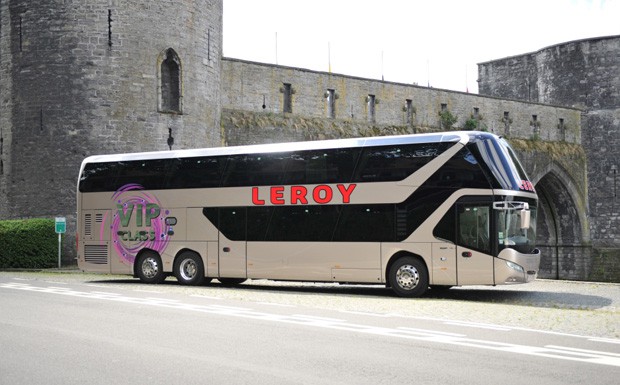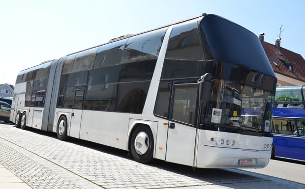 von 14: ... Konrad Auwärter. Um die Alltagstauglichkeit des Skyliner zu beweisen, fuhr er mit dem 12 Meter langen Bus von Stuttgart nach Brüssel
