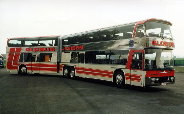 von 14: „Damals hat keiner geglaubt, dass ein Doppeldecker überhaupt auf der Autobahn fahren kann, ohne umzukippen. Die Zweifler haben wir dann aber schnell vom Gegenteil überzeugt“, erinnert sich Konrad Auwärter