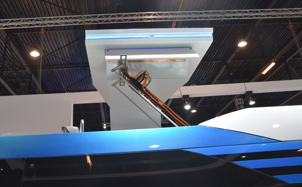 von 38: Der Bus wurde außerdem mit einem auf dem Dach installierten Ladesystem ausgestattet. Der Pantograph besitzt eine Ladeleistung von bis zu 450 kW. Außerdem besitzt der Urbino electric zusätzlich einen Plug-in-Anschluss