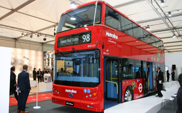 von 38: Kaum zu glauben, aber bei diesem Doppeldecker für London handelt es sich um einen rein elektrisch angetriebenen Bus. Dahinter steckt der chinesische Hersteller BYD. Der Probebetrieb soll in Kürze starten