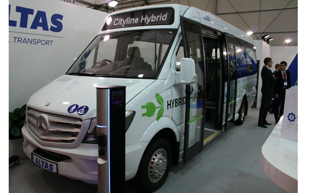 von 38: Eine Hybrid-Version seines Mini-Linienbusses Cityline hatte Altas aus Litauen mit nach Kortrijk gebracht. Der Low-Entry-Stadtbus bietet Platz für maximal 17+1 Sitzplätze