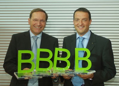 von 18: Michael Göpfarth (r.), Geschäftsführer Mercedes-Benz Omnibusse und Werner Staib, Geschäftsführer Setra Omnibusse bei der Preisverleihung Bester Bus 2007