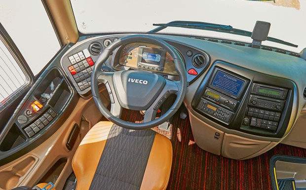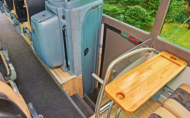 von 15: Iveco Bus Magelys: Für 245.000 Euro gibt es unter anderem eine dritte Tür für einen Lift, eine Vis-a-Vis-Sitzgelegenheit, WLAN und USB-Ladestationen an jedem Platz