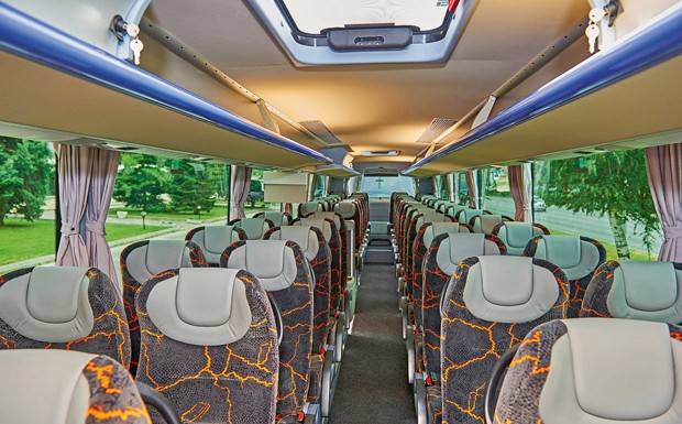 von 15: Der Fahrgastraum bietet einfachen Standard. Die Sitze der Marke Inova Agile 4540 gehen in Ordnung, 50 Plätze bei einer Länge von knapp über zwölf Metern entsprechen dem typischen Drei-Sterne-Abstand