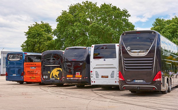 von 15: Das Teilnehmerfeld hätte unterschiedlicher nicht sein können: VDL schickte den FMD, Sunsundegui kam mit dem SC7, Neoplan fuhr mit dem Skyliner vor, Iveco war mit dem Magelys vertreten, Temsa mit dem HD12 und Setra mit der TopClass 500