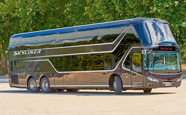 von 15: Neoplan Skyliner: Er verkörpert die hohe Schule des Busdesigns. Auch besonders: Ober- und Unterdeck werden separat voneinander temperiert. Fahren lässt sich der Skyliner - auch aufgrund der CDC-Stoßdämpfer - phänomenal, egal ob beladen oder unbeladen