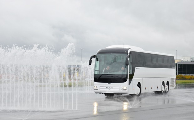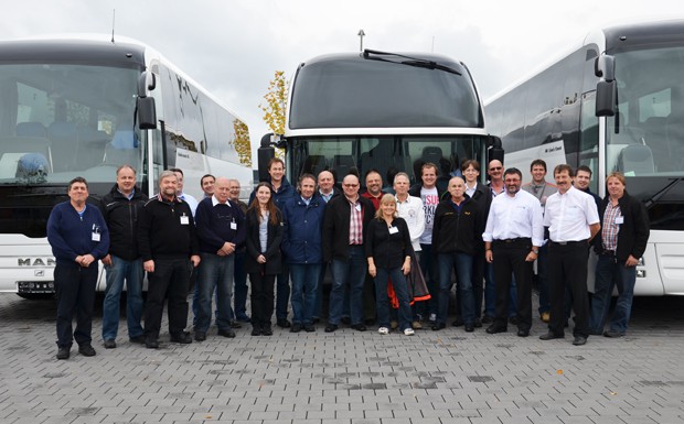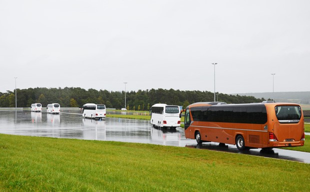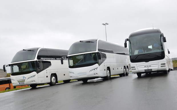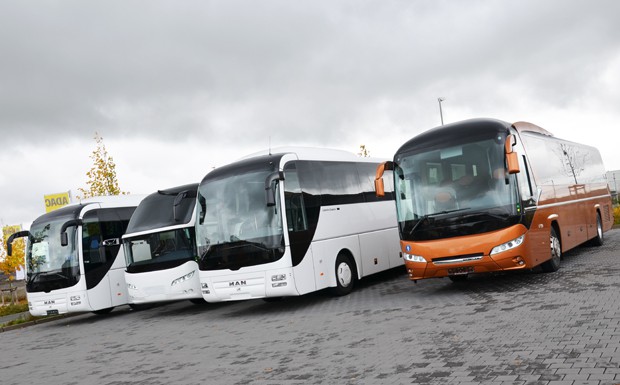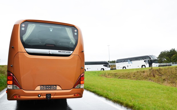 von 37: Und zwar einen zwei- sowie einen dreiachsigen Neoplan Cityliner, den neuen Neoplan Jetliner und einen Zwei- bzw. Dreiachser vom Typ MAN Lion's Coach