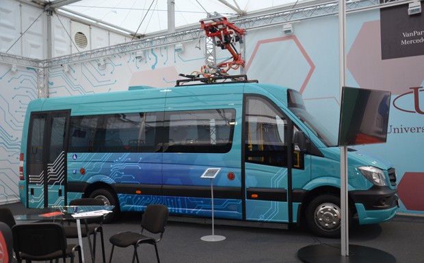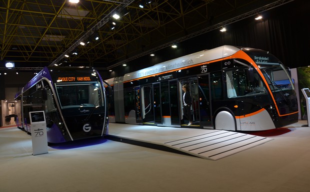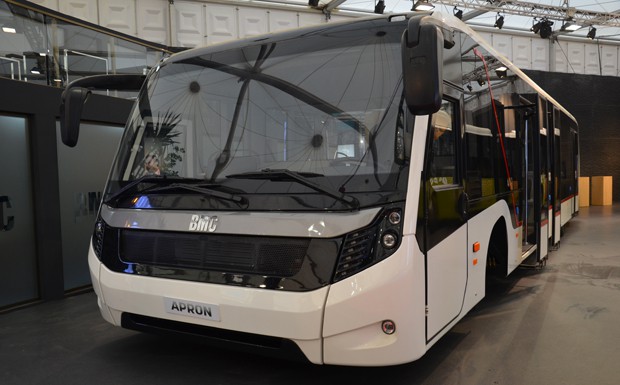 von 21: Abseits der großen Stände gibt es auch reichlich Ungewöhnliches zu entdecken: zum Beispiel diesen elektrisch betriebenen Vorfeldbus von BMC ...