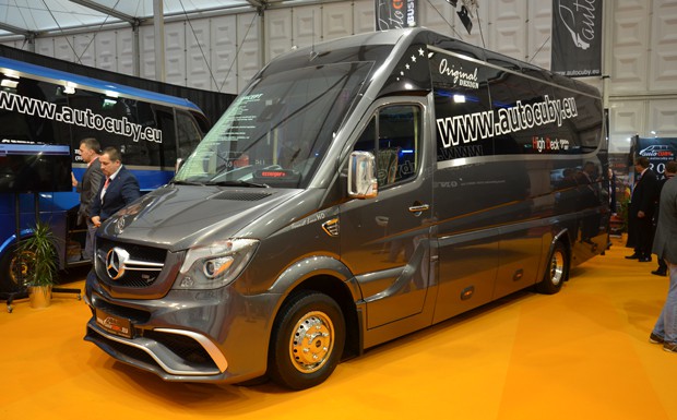 von 21: In den Hallen 8 und 9 zeigten Aufbauhersteller, was alles möglich ist im Busbereich - so erinnert diese Sprinter-Front ein wenig an PS-starke AMG-Modelle