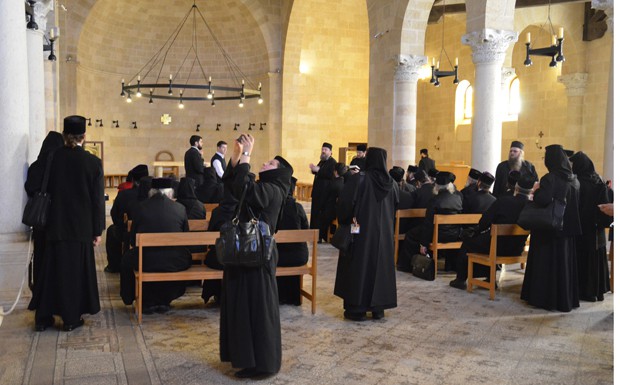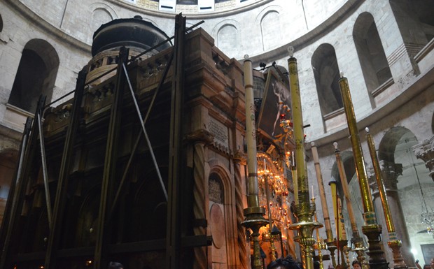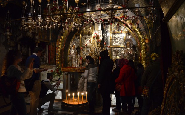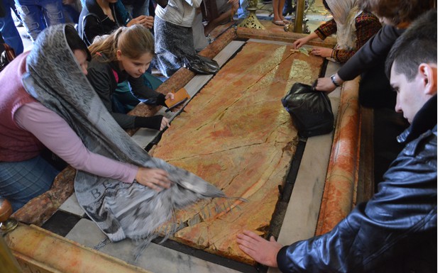 von 80: ... und vor der Engelskapelle stehen Dutzende Gläubige, um einen Blick auf die Marmortafel zu erhalten, an deren Stelle der Leichnam Jesu gelegen haben soll