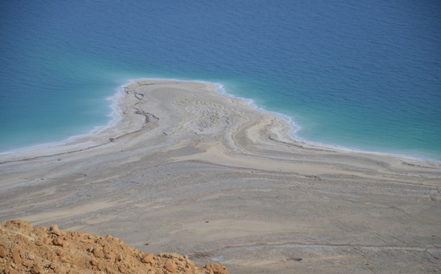 von 80: Jedes Jahr sinkt der Wasserspiegel des Toten Meeres um circa einen Meter - Schuld sind die Landwirtschaft im Norden, die dem Fluss Jordan, der das Tote Meer speist, zu viel Wasser entzieht, und die wasserraubende Industrie direkt am Toten Meer