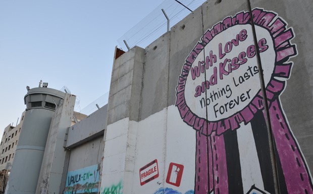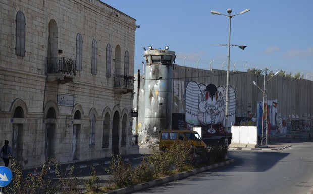 von 80: Die Konflikte der Gegenwart werden wiederum in Bethlehem, palästinensischem Autonomiegebiet, sichtbar: Hier ist zum ersten Mal ein Teil der israelischen Sperranlage, die sich als meterhohe Mauer darstellt, zu sehen
