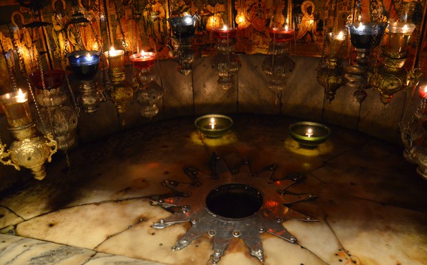 von 80: Zweimal heißt es "den Kopf einziehen" - dann stehen Besucher in der engen Geburtsgrotte; ein 14-zackiger Stern symbolisiert die Stelle, an der Jesus geboren sein soll