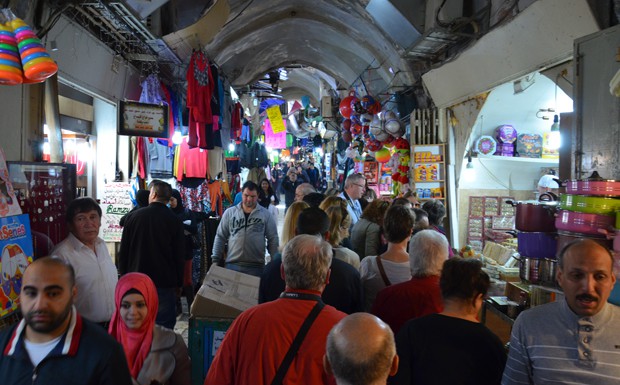 von 80: In den engen, verwinkelten Gassen herrscht geschäftiges Treiben, denn die Via Dolorosa führt größtenteils durch das muslimische Viertel mit seinen Basars