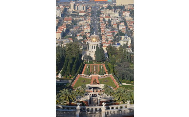 von 80: Die Bahai'i-Gärten sind das Wahrzeichen von Haifa - sie erstrecken über einen Höhenunterschied von 250 Metern bis hinunter in die Stadt, auf halber Höhe erhebt sich ein Schrein mit goldener Kuppel