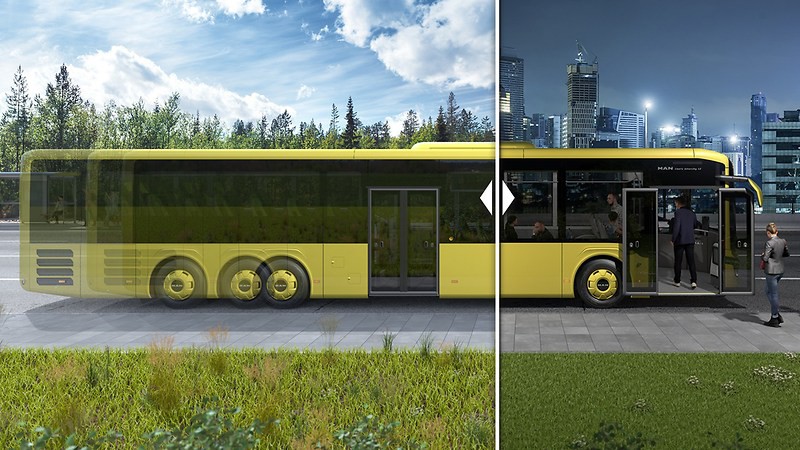 von 4: Drei verschiedene Längen, die dank Modulbauweise alle für stadtorientierte oder überlandorientierte Anwendung konfiguriert werden können – das ergibt sechs Derivate des neuen MAN Einstiegsmodells.