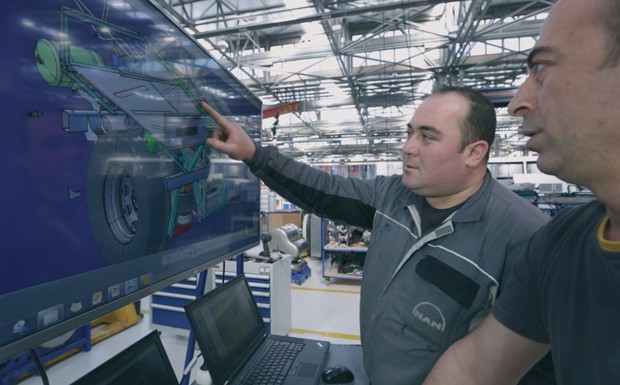 von 13: Am Bau eines Busses, etwa dem 480 PS starken und rund 14 Meter langen MAN Lion’s Coach L Supreme, das rollende Luxus-Quartier des FC Bayern München, sind rund 1.000 Mitarbeiter beteiligt