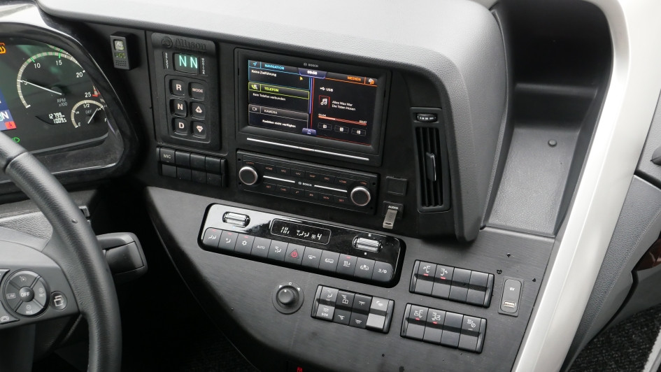 von 10: Hier zu erkennen die neue Multimedia-Einheit von Bosch. Sie wird künftig auch bei allen neuen Setra- und Mercedes-Benz Reisebussen zu finden sein, wenn die großen Überarbeitungen erscheinen werden. Das Multimediacenter besitzt unter anderem einen Touch-Bildschirm.