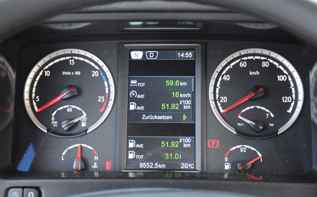 von 31: Urteil: Der Scania ist ein grundsolides Fahrzeug. Sein Auftritt ist markant, männlich und modern. Der gefahrene Antriebsstrang funktioniert ausgezeichnet - der Gesamtverbrauch war doch recht hoch