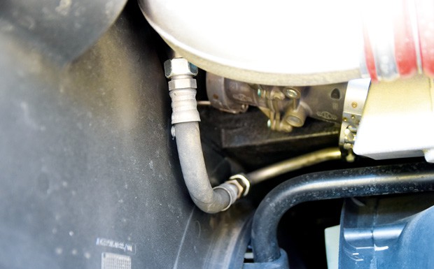 von 21: Hier zu sehen ist der Druckschlauch vom Power-Boost. Bei diesem System wird aus der Seriendruckluftanlage Druckluft in den Ansaugtrakt des Motors gepumpt - das Anfahrdrehmoment erhöht sich