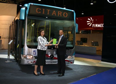 von 10: Chefredakteurin Anne Katrin Wieser übergab während des Kongresses die Auszeichnung "Bester Bus 2010" der Zeitschrift BUSFahrer an Michael Göpfarth, Geschäftsführer Mercedes-Benz Omnibusse für den Citaro
