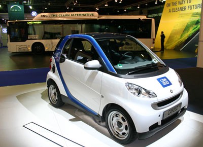 von 10: Am Daimler-Stand wurde das Verkehrssystem Car2Go vorgestellt, das Daimler zurzeit mit jeweils 300 Smart in Ulm, Hamburg und Austin/USA testet