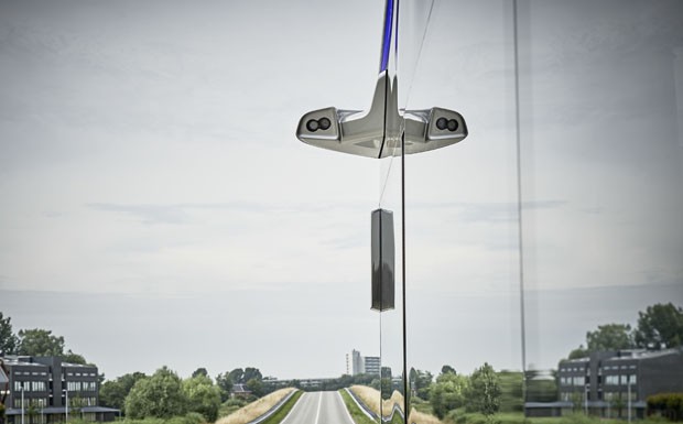 von 16: Ein knappes Dutzend Kameras scannt Fahrbahn und Umgebung, Fern- und Nahbereichsradarsysteme tasten ständig die vorausliegende Strecke ab. Hinzu kommt ein GPS-System