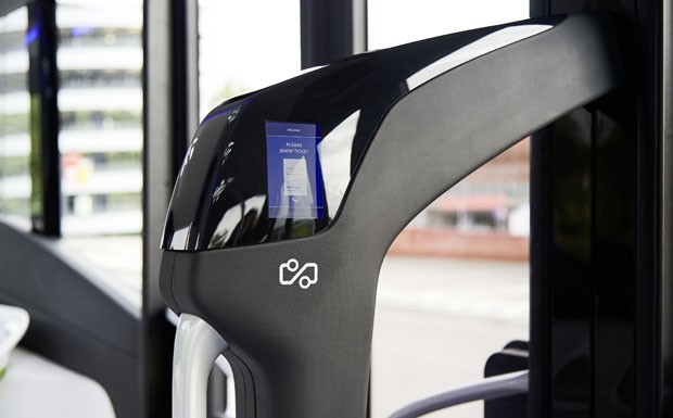 von 16: Vorn ist der Bereich „Service“ in Fahrernähe angesiedelt, in der Mitte in Türnähe der Bereich „Express“ für kurze Strecken mit Schwerpunkt auf Stehplätze und schnellen Fahrgastfluss. Hinten schließt sich „Lounge“ an, gedacht für eine längere Verweildauer