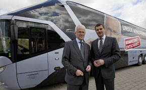 Der amtierende Ministerpräsident von Nordrhein-Westfalen Jürgen Rüttgers (CDU) ist bis zur Landtagswahl am 9. Mai mit einem VIP-Bus aus dem Hause e-weinzierl in Köln unterwegs.
