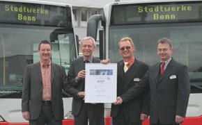 Der Geschäftsführer der VDV-Akademie, Michael Weber-Wernz, überreichte das Gütesiegel am 23. April an Harald Brüne, Bereichsleiter Fahrbetrieb, und Fahrschulleiter Klaus Winter. Das Kompetenzsiegel dokumentiert die hohe Qualität der Aus- und Weiterbildung in der Fahrschule der SWB Bus und Bahn. Die Geschäftsprozesse, die Kompetenzen des Lehrpersonals, die Lehr- und Fahrzeugausstattung sowie die Feedback- und Bewertungssysteme der Aus- und Weiterbildungsstätten werden durch qualifizierte externe Gutachter, die aus der betrieblichen Praxis kommen, auf Herz und Nieren geprüft. Betriebs- und Ausbildungsleitung sowie die Ausbilder und Fahrlehrer garantieren dem Unternehmen, dass die in der Fahrschule ausgebildeten Fahrerinnen und Fahrer immer auf dem neuesten Wissenstand sind.