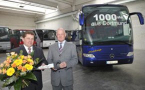 In Dortmund wurde am 15. April der 1000ste Gebrauchtbus ausgeliefert. Das Jubiläumsfahrzeug, ein Mercedes-Benz Travego, wurde im Gebrauchtfahrzeug-Center Dortmund durch Leiter Andreas Janke an den Omnibus-Unternehmer Erwin Holtkamp übergeben.