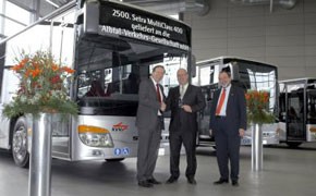 Die Albtal-Verkehrs-Gesellschaft mbH (AVG), eine Tochter der Karlsruher Verkehrsbetriebe, hat mit der Übernahme von vier Niederflurfahrzeugen Setra S 415 NF auch den 2.500 Bus der Setra MultiClass 400 erhalten.