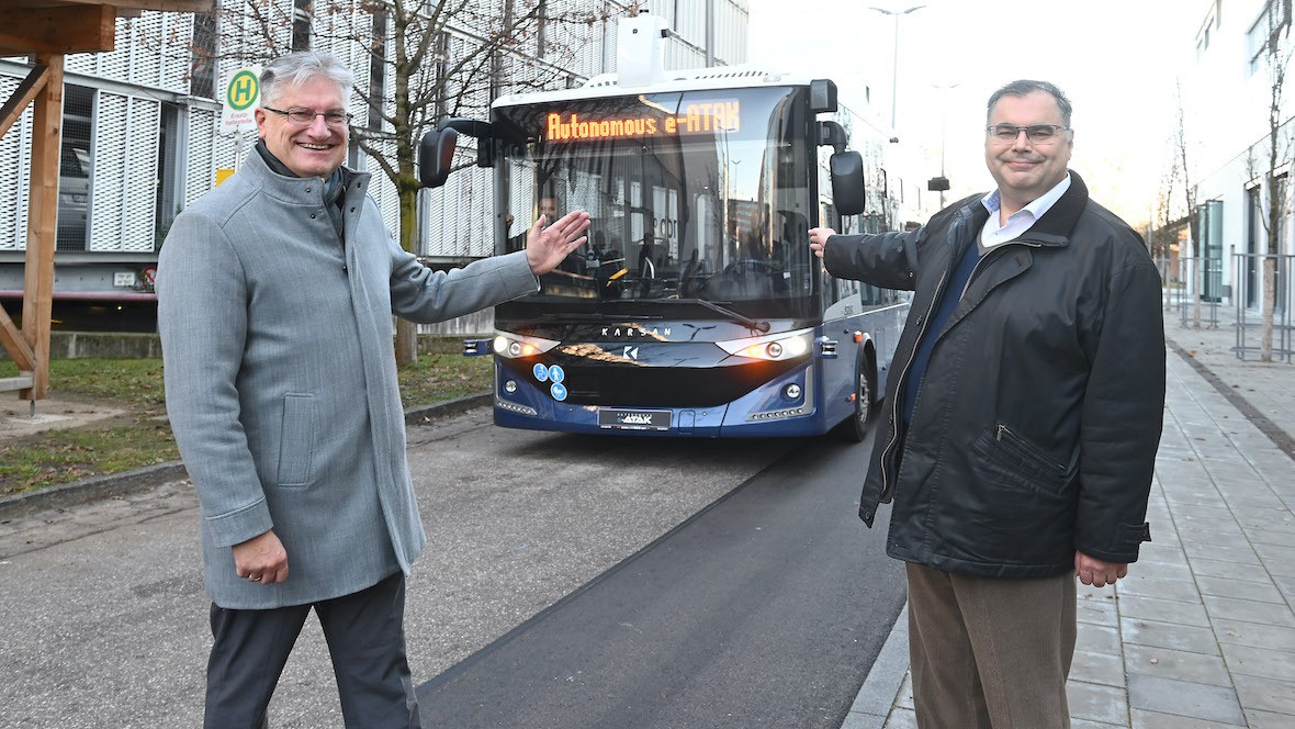 Die Münchner Verkehrsgesellschaft (MVG) testet einen autonomen Midibus des Herstellers Karsan. Das Fahrzeug vom Typ e-ATAK ist nach Angaben der MVG acht Meter lang, kann bis zu 52 Fahrgäste befördern und kommt mit einer Ladung laut Herstellerangabe bis zu 300 Kilometer weit. Für einen sicheren Betrieb ist der Bus mit modernen Sensoren sowie einem Selbstfahrsystem von ADASTEC, einem führenden Technologiepartner für autonome Fahrsysteme, ausgerüstet. Der Midibus ist bereits seit dieser Woche auf einer Strecke im Betriebsgelände der MVG unterwegs, teilte das Verkehrsunternehmen am Donnerstag, 18. Dezember, mit.