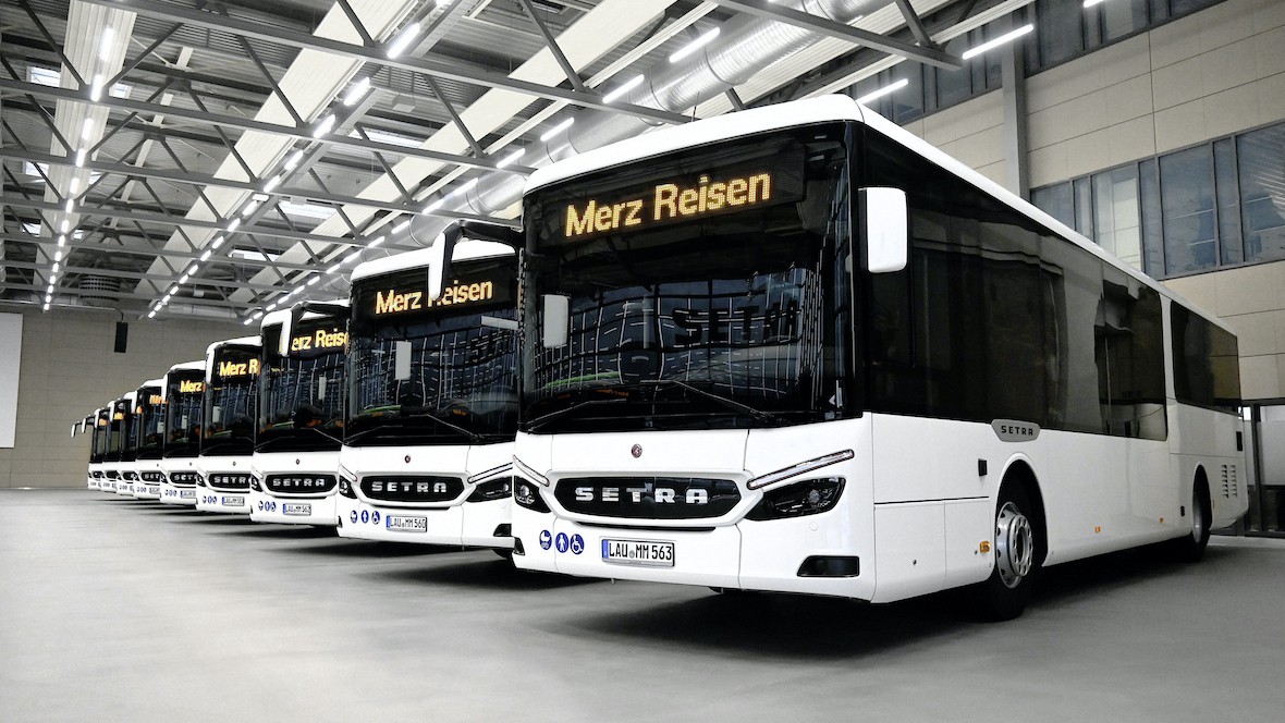 Mit 17 neuen Low Entry Überlandbussen der Marke Setra stockt das Busunternehmen Merz Reisen seine Flotte auf. Sieben der Setra MultiClass-Busse werden nach dem Gewinn einer Linienbündel‑Ausschreibung im Landkreis Amberg-Sulzbach in Bayern eingesetzt. Das Streckennetz deckt die Region zwischen Amberg und Neumarkt in der Oberpfalz ab. Zehn Fahrzeuge bedienen Strecken in einem wiedergewonnenen Linienbündel, das Routen in und um Altdorf und auch die Verbindung zwischen Altdorf und Lauf umfasst. Die S 515 LE von Merz Reisen sind mit jeweils 45 Sitzplätzen ausgestattet und haben unter anderem auch den Sideguard Assist 2 an Bord. Dieses Sicherheits-Assistenz-System unterstützt den Fahrer in kritischen Abbiegesituationen, wenn die Sicht möglicherweise eingeschränkt ist.
