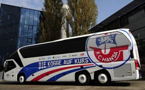 Deutscher Traditionsverein Hansa Rostock steigt auf Neoplan Starliner als Luxus-Mannschaftsbus um.
