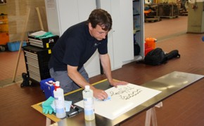 Da es ihn nicht am Markt gab, entwickelte die Rheinbahn in Zusammenarbeit mit einem Lackspezialisten einen Schutzfilm, der dauerhaft die Innenräume der Fahrzeuge schützt. In einem ersten Schritt investiert das Verkehrsunternehmen rund eine Million Euro, um den Fahrgastraum von 240 Bussen in einen quasi neuwertigen Zustand zu versetzen. Der Schutzlack versiegelt die Oberfläche und hält zahlreichen Reinigungen standhält. Er kann problemlos auch nachträglich im Innenraum der Fahrzeuge mit einer Rolle oder per Spritzverfahren aufgetragen werden. Vorgeschaltet ist eine vollständige Grundreinigung des gesamten Fahrgastraums. Bei Stift- oder Lackspuren, die sich nicht mehr restlos entfernen lassen, werden die jeweiligen Teile in dem entsprechenden Farbton neu lackiert. Erst danach tragen die Mitarbeiter den neuen Lack auf, der nach rund 16 Stunden ausgehärtet ist.