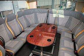 "Ich freue mich sehr, dass ich so kurz nach der ersten Vorstellung diesen VISEON C13 an die Ryffel AG überreichen kann", sagte Joachim Reinmuth, Geschäftsführender Gesellschafter der Viseon Bus GmbHbei der Übergabe am 5. Mai. "Nicht nur, dass der schweizer Busmarkt für uns als Premium-Hersteller besonders wichtig ist – mit der Ryffel AG konnten wir zudem einen äußerst innovativen und zugleich anspruchsvollen Kunden gewinnen." Ryffel wird den Reisebus im Geschäftsbereich Prestige-Reisen als exklusives VIP-Fahrzeug in der Omnibus-Vermietung einsetzen. Der 12,7 Meter lange Viseon C13 für die Ryffel AG verfügt über einen Mitteleinstieg sowie über eine exklusive VIP-Ausstattung mit 28 Ledersitzen, einer Rundsitzgruppe mit sieben Sitzen samt Tisch im Heck, zwei Dos-a-Dos-Tische sowie einer eigens angefertigten, großen Stehküche mit Spülbecken und zahlreichen Schubladen mit integrierten Gläserhaltern. Neueste Medientechnik repräsentiert die Multimedia-Anlage mit drei Monitoren im Fahrgastraum, Laptop-Anschluss und Internet-WLAN-Netz im Fahrzeug. Die Ryffel AG ist als traditionsreiches Familienunternehmen seit mehr als 115 Jahren der Personenbeförderung und dem Gütertransport verpflichtet. Heute beschäftigt die Ryffel AG insgesamt mehr als 80 Mitarbeiter. Neben einigen LKW betreibt das Unternehmen 16 Postbusse, 13 Linienbusse für den Zürcher Verkehrsverbund sowie zehn Reisebusse. Zum Fuhrpark gehören – abgesehen von dem neuen VISEON C13 –ein weiterer VIP-Bus mit 34 Sitzen, ein Reise-Doppeldecker sowie weitere Reisebusse in unterschiedlicher Größe.