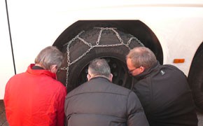 In Raas in Südtirol befassten sich die Workshop-Teilnehmer mit den Themen: -Umgang mit den Kunden -Kommunikation -Reiseorganisation / Ablauforganisation -Bussicherheit Da die Wintersaison vor der Tür steht, lag der Schwerpunkt auf dem Thema Sicherheit. Den theoretische Vortrag zur Bussicherheit ergänzte ein praktischer Teil, in dem jeder Fahrer nochmals eine Abfahrtskontrolle durchführte und das Anlegen von Schneeketten übte. So fühlen sich die Teilnehmer gut vorbereitet für die Wintersaison. (akp)