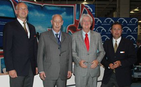 Unter dem zentralen Thema "Amerika" lädt der Themenpark des Volkswagen Konzerns zum Endecken und Genießen ein: Ein weitläufiger Wintermarkt, eine phantasievolle Eislauf-Show und eine weihnachtlich geschmückte Parklandschaft erwarten die Besucher ab dem 29. November 2008. Als Ehrengäste auf der Pressekonferenz begrüßten Betriebsleiter der Autostadt Christian Hammerich (ganz links) und Leiter Vertrieb-Touristik Klaus Lohmann (ganz rechts) den Präsidenten des deutschen ReiseVerbands (DRV), Klaus Laepple (2. v.l.), und den Hauptgeschäftsführer des RDA, Dieter Gauf (2. v.r.).