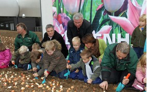 Zu Beginn der Pflanzungen stellten Vertreter des Keukenhofs und der Bundesgartenschau Koblenz 2011 GmbH ihre Kooperation der Öffentlichkeit vor und pflanzten gemeinsam die ersten Zwiebeln, unterstützt durch den BUGA-Aufsichtsratsvorsitzenden und Koblenzer Oberbürgermeister Joachim Hofmann-Göttig sowie durch die „Löwengruppe“ des katholischen Kindergartens St. Pankratius. Der Keukenhof ist eine 1949 zum ersten Mal im niederländischen Lisse organisierte Blu-menausstellung, die sich zu einer jährlich wiederkehrenden Veranstaltung und zu einer der wichtigsten Attraktionen der Niederlande entwickelt hat. So besuchten in den vergangenen 60 Jahren fast 45 Millionen Menschen diese 32 Hektar große Parkanlage voller blühender Tulpen, Hyazinthen und Narzissen. Er wird im nächsten Jahr von 24. März bis 20. Mai geöffnet sein. Eine Miniaturausgabe des Keukenhofs entsteht nun auch auf der Bundesgartenschau Koblenz 2011. Zum einen wird derzeit in der Nähe der Bergstation der BUGA-Seilbahn ein Infopavillon neben einem 40.000 Blumenzwiebeln fassenden Garten gebaut. Zum anderen werden die holländischen Gärtner bis Ende dieser Woche weitere 80.000 Blumenzwiebeln verteilt auf mehrere Pflanzflächen auf dem Festungsplateau einbringen. Im Gegenzug präsentiert sich die Bundesgartenschau Koblenz 2011 GmbH mit einem eigenen Inspirationsgarten auf dem Keukenhof, der ganz bewusst 2011 „Deutschland“ als Länderschwerpunktthema gewählt hat. Das Ergebnis der insgesamt 120.000 von den niederländischen Gärtnern gepflanzten Blu-menzwiebeln werden die BUGA-Besucher von Mitte April bis Mitte Mai 2011 bewundern können. Danach werden Sommer-Blumenzwiebeln eingebracht, die im Juli und August zu einer wunderschönen Dahlien- und Gladiolen-Blüte führen. Während der gesamten Dauer der Bundesgartenschau Koblenz 2011 wird im Keukenhof-Pavillon eine Ausstellung rund um das Thema Blumenzwiebelzucht in Holland zu sehen sein, die unter anderem den Prozess von der Blumenzwiebel bis zur blühenden Tulpe zeigt und auch praktische Tipps für den eigenen Garten bietet. „Für das Jahr 2011 hat der Keukenhof ‚Deutschland. Land der Dichter und Denker’ als zentrales Thema für den Park gewählt. Dies ist sowohl eine Hommage an den wichtigsten Exportmarkt für Blumen und Blumenzwiebeln, aber auch an die vielen deutschen Besucher, die jedes Jahr den Keukenhof besuchen“, betonte Michèl van Dun, Vertriebsmanager des Keukenhofs. Der Kern der Kooperation ist die gegenseitige Bewerbung der beiden Gartenausstellungen bei Veranstaltungen und anderen Marketingmaßnahmen. (ah)